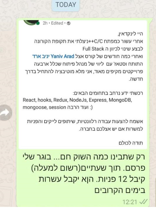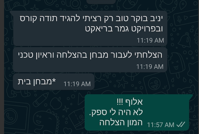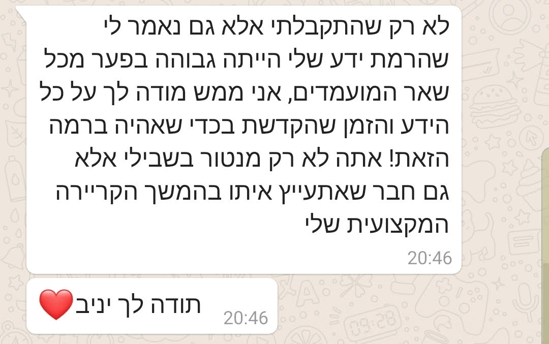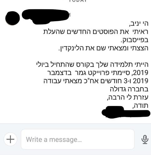 My name is Yaniv Arad, and I’m one of the most experienced technology instructors and mentors in Israel. I’ve trained and accompanied more than 7000 people on their journey to find desirable jobs in high-tech: people who came with no programming background whatsoever, BA graduates, and people who served in military units such as 8200 and Mamram – all of whom had one common purpose: to move forward. To take the next step in their career.